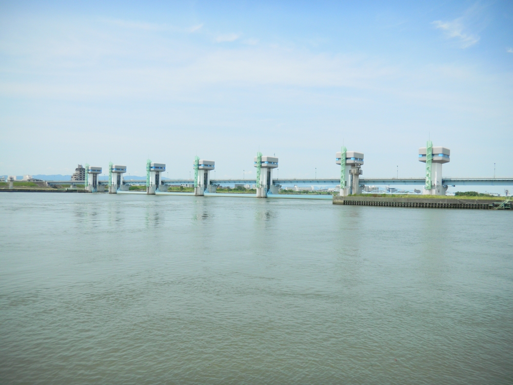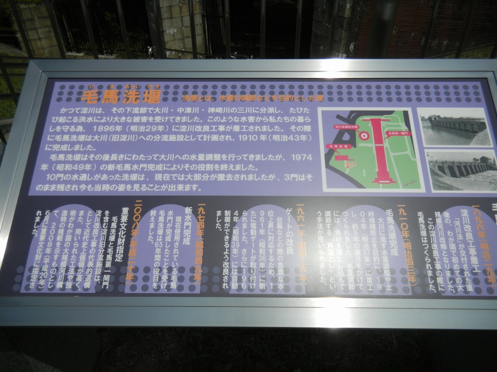 大阪市北区長柄3 淀川旧洗堰アーチ 明治43年(1910年) 梅雨の隙間の快晴日 遅めのランチは、ふとミニサイクルで淀川べりまでぶらぶら 阪急電車からの車窓風景は、淀川河川敷に立って初めて納得の 遠大な風景でした 毛馬閘門の名で知られるこの付近立派な施設も目にすることができました >> 旧洗堰の説明パネル