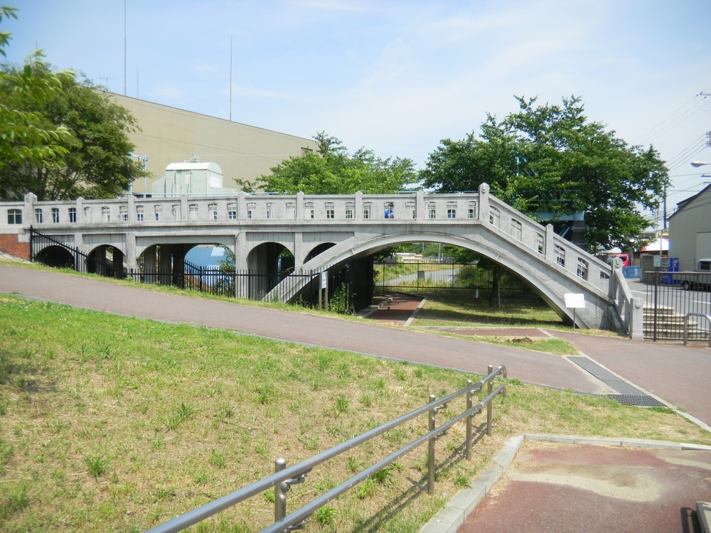 眼鏡橋 大正3年(1914年) 第一閘門西側に、流れていた長柄運河に架けられていた眼鏡橋も今では、 移設され、風景の一つに溶け込んでいました ::: photo 2010/06 ::: 撮影場所