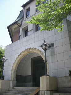 大阪市生野区勝山北1丁目 プール学院清心館 昭和9年(1934) 2005.6月残念ながら解体されました 環状線桃谷駅 この駅は、西に向かえば警察病院のある落着いた住宅街 駅から東は桃谷商店街が続く市民派正等の下町 この商店街を抜け南に歩けば、この建物に出会います 女学校として名門のこの学校、私の小学校時代の幼馴染 が、ここに通いその彼女に学園祭に招かれて、私が校庭 からこの建物を眺めた事が、今から30年以上前の事と、 今打ち込みながら思い出しました ::: photo 2004/04 ::: 撮影場所