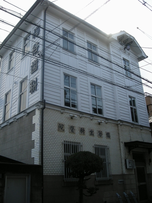 大阪市中央区谷町6 三ツ山石井歯科 昭和2年(1927) 長堀通りを東に、大阪市内で一番の高台、上町台地に向かい 松屋町筋の次、軽い坂道のあるのが谷町筋です 谷町は、町屋風の古い民家や商店が残る界隈、この建物、 長堀通りに面して建つ小さな建物です 建物の歴史については詳しくは、知らないんですが 一階入口のひさしと飾り窓の綺麗な建物です 2009/5/20 追記 この建物を建てられた(施主)のお孫さんより嬉しいメールを戴き 竣工年も教えて戴きました 月刊誌「大阪人」2004年5月号には、こちらの建物が掲載され、 貴重な建物内部もご紹介されその瀟洒できれいな写真は多くの人に 紹介されたそうです 最近、今まで残されていた近代建築が、ぽつぽつと姿を消してい く中で、やはり歴史を重ねた建物は、関連の皆様やご家族の方の 思い入れや重ねたご苦労があって初めてそのきれいな姿が保てる のだなとつくづく感じさせて戴けたありがたいメールでした ::: photo 2004/11 ::: 撮影場所