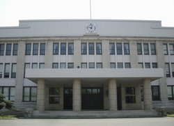 大阪市中央区大手前2 大阪府庁 大正15年(1926) 子供の頃、官庁が並ぶこのあたりでもひときわ大きく 見えたのが、この大阪府庁でした 当時、前の道路は市電が走りその車窓からは、番場町 のNHK、大阪府警本部、大阪府庁を通り過ぎ、大手 前病院を眺め市電は天満へと到着します この頃の大阪城の京橋側は、焼け果てた工場の残骸が 残り、不発弾処理が完全に終わっていない広大な野原 今ではビジネスパークとして高層ビルの町へと代わり ました そんな光景を、この建物はずっと見続けています ::: photo 2004/9 ::: 撮影場所